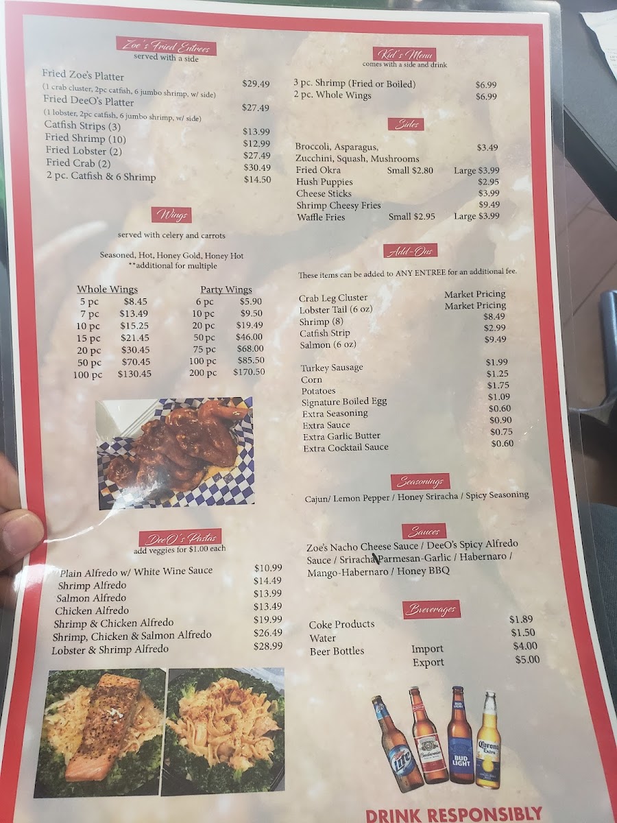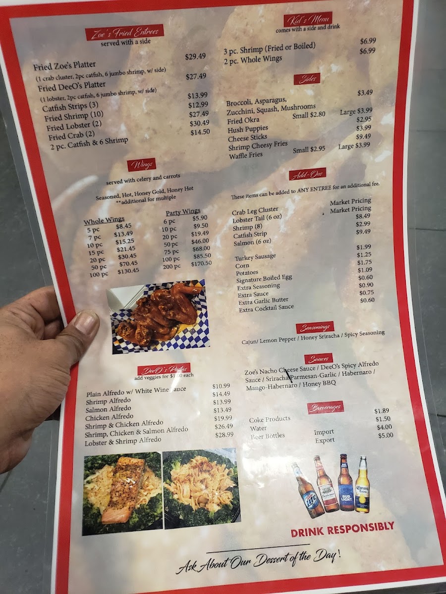 Welcome to DeeO's Seafood, located at 2256 N Germantown Pkwy, Cordova, TN. This culinary gem specializes in mouthwatering seafood dishes that burst with flavor and authenticity. Their menu showcases comforting classics, with highlights including the rich and creamy Zoe's Alfredo in various options: Shrimp, Salmon, Chicken, and Veggie, each designed to satisfy any palate.